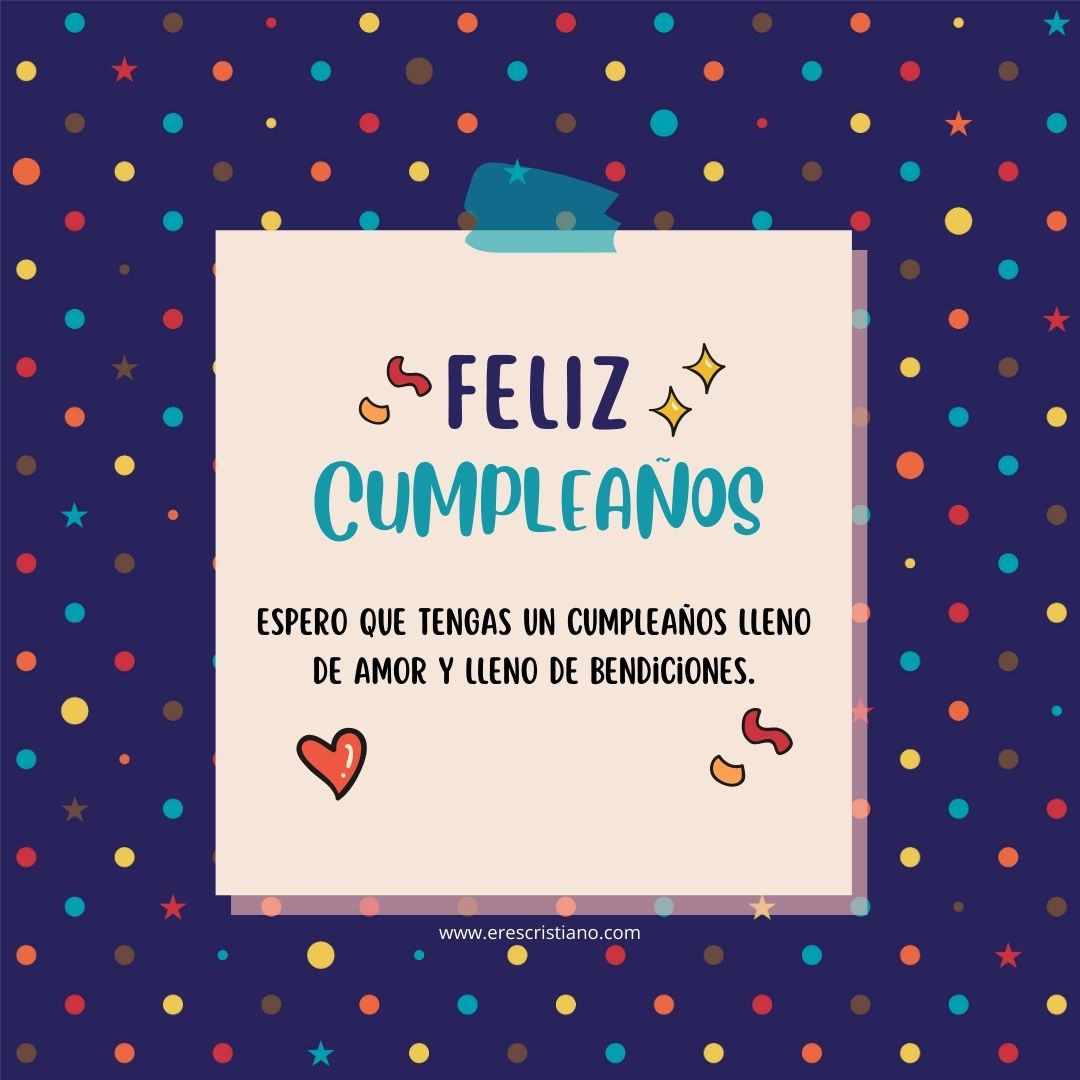 Feliz cumpleaños, amigo/a en Cristo, que Dios te bendiga en este día especial. Que su amor te llene y te haga sentir amado/a y que su gracia te inspire y te guíe en todo lo que hagas.